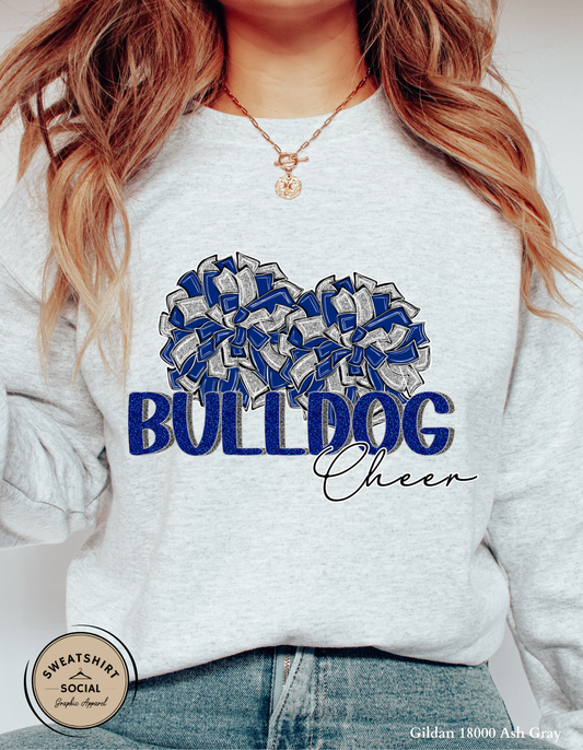 Bulldog Cheer Pom Pom Tee or Sweatshirt – Blue & Gray Spirit Wear (Adult Sizes)