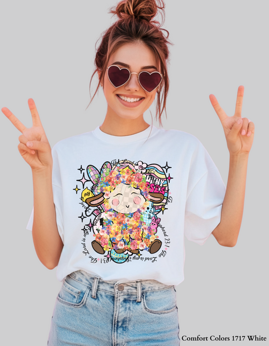 Floral Lamb – Psalm 23:1 Easter T-Shirt or Sweatshirt (Family Matching)