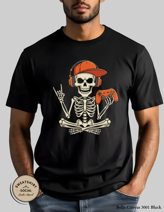 Adult Gamer Skeleton Halloween Shirt – Spooky Cool Gaming Tee (Unisex S–2XL)