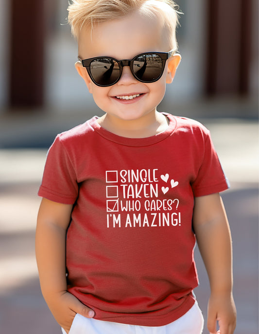 Who Cares? I’m Amazing Valentine Shirt for Kids – Fun Confidence Design (Infant–Youth Sizes)