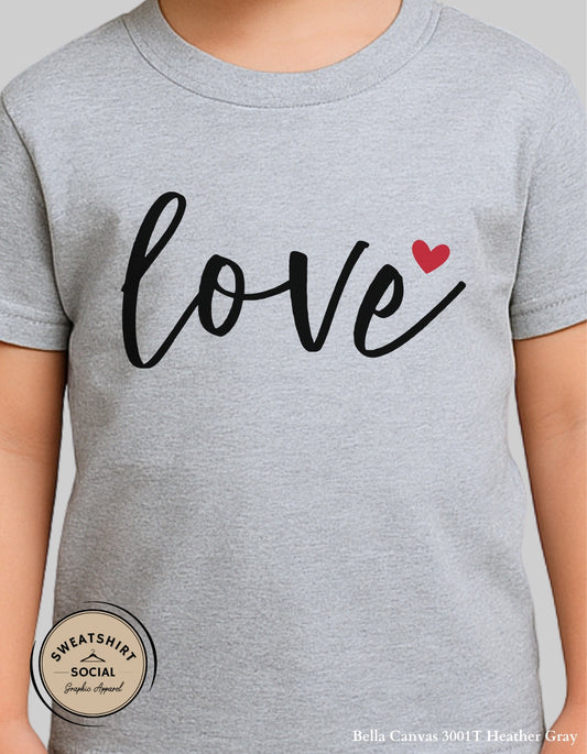 Love Script Valentine Shirt for Kids – Simple Heart Design (Infant–Youth Sizes)