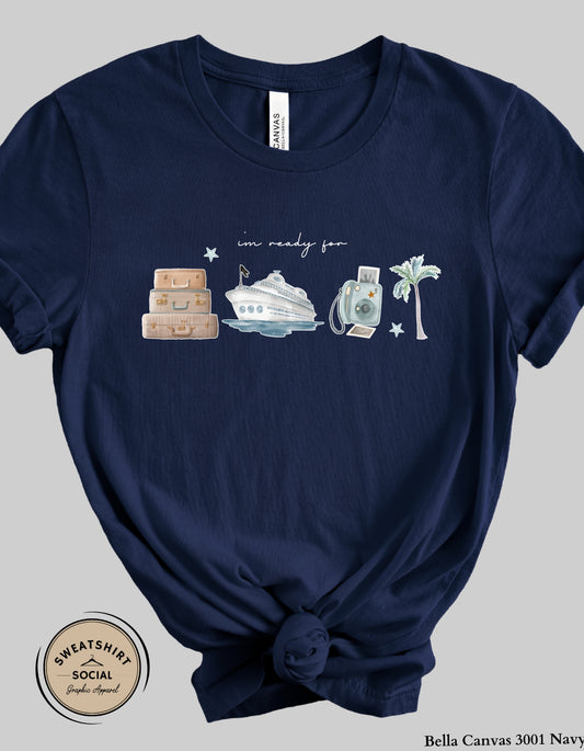 I’m Ready For Vacation T-Shirt or Sweatshirt – Travel Cruise Graphic Tee (Adult Sizes S–2XL)