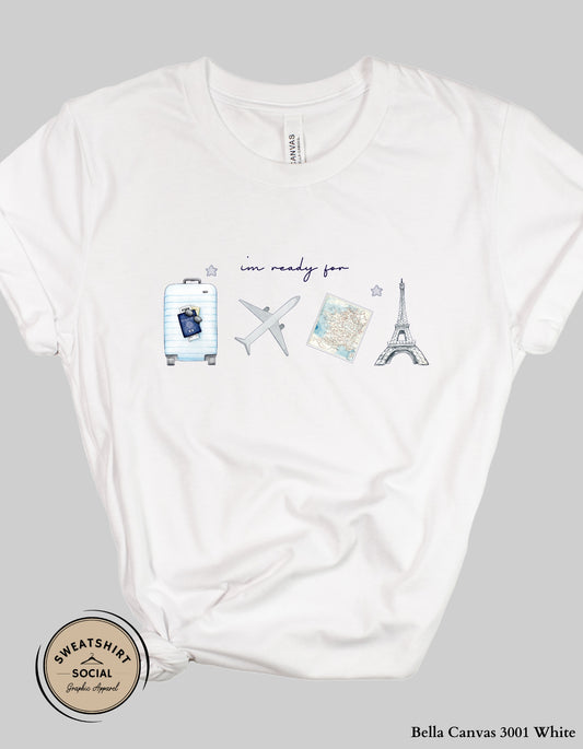 I’m Ready for Paris T-Shirt or Sweatshirt – Travel Vacation Graphic Design (Adult Sizes S–2XL)