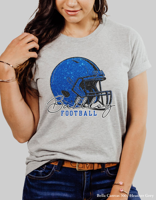 Gold Hill Bulldogs Football Shirt – Faux Glitter Helmet Design (Adult Game Day Tee or Sweatshirt)