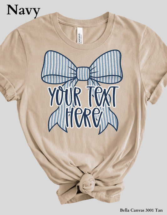 Custom Bow Shirt – Personalized Name or Phrase Tee with Striped Bow Design (Adult Sizes)