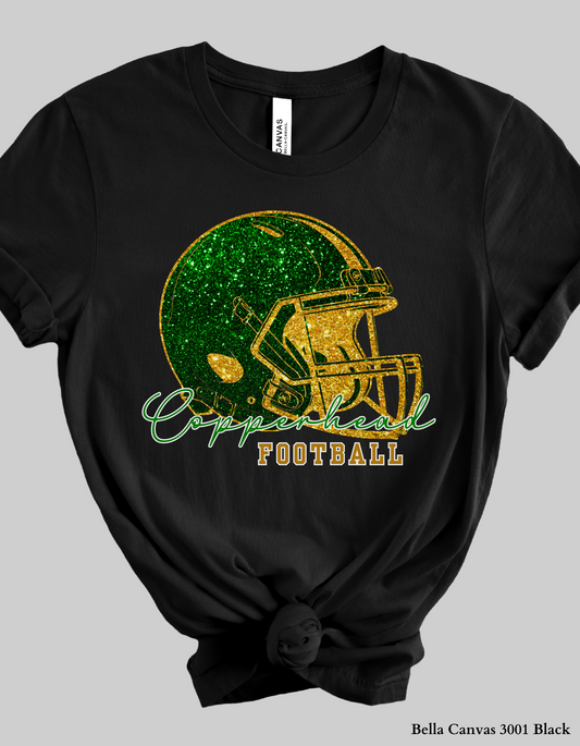 Catawba Ridge Copperheads Football Shirt – Faux Glitter Helmet Design (Game Day Spirit Tee or Sweatshirt)