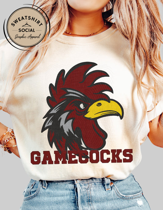 Gamecocks Corduroy Look Shirt or Sweatshirt – Textured Mascot Design (Adult Sizes, South Carolina Game Day Tee)