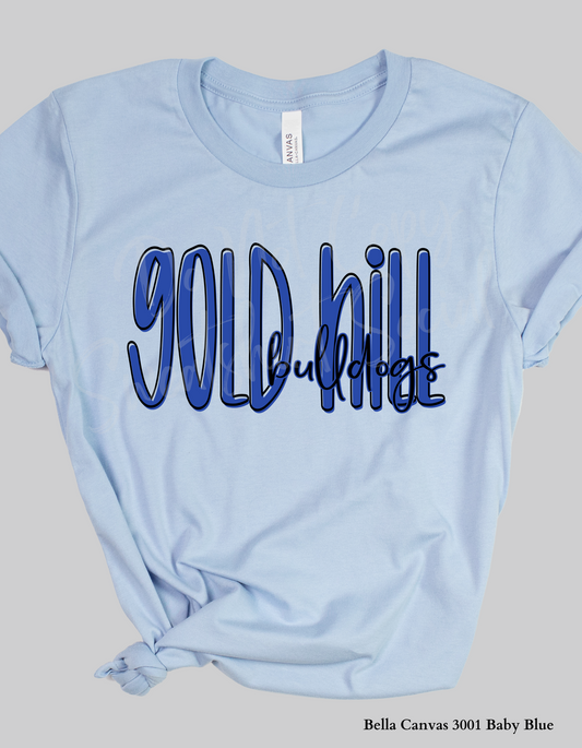 Gold Hill Bulldogs Lettered Look Tee or Sweatshirt – Royal Blue (Adult Sizes)
