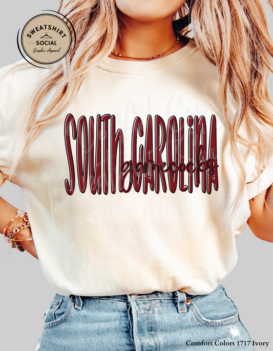 South Carolina Gamecocks Lettered Look Tee or Sweatshirt – Adult Sizes