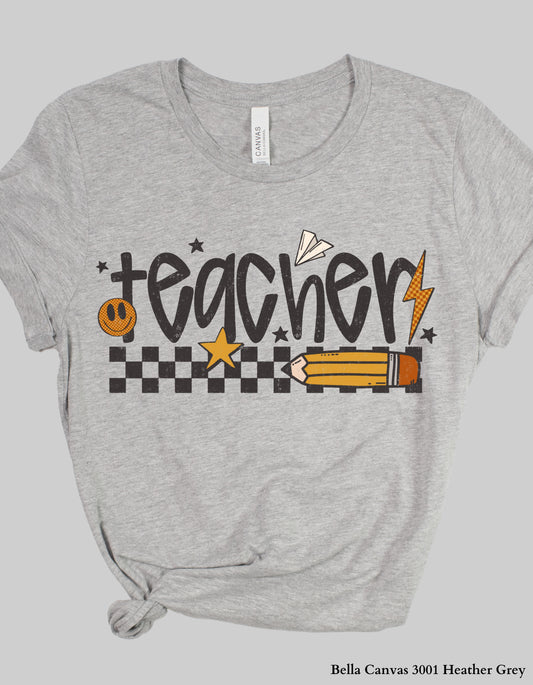 Vintage Teacher Shirt or Sweatshirt – Retro Checkered Pencil Design (Unisex Fit for Back to School)