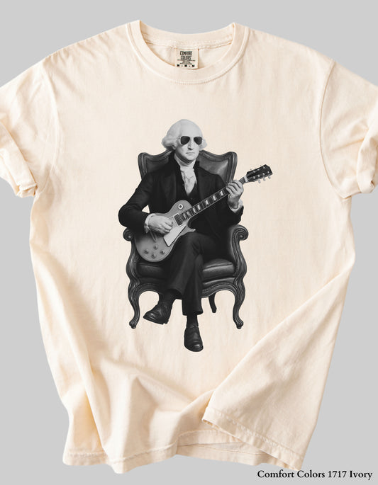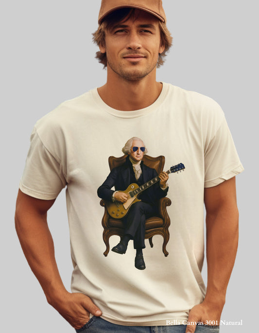 George Washington Guitar Shirt or Sweatshirt – Funny Patriotic Graphic Tee (Founding Fathers Rock Series)