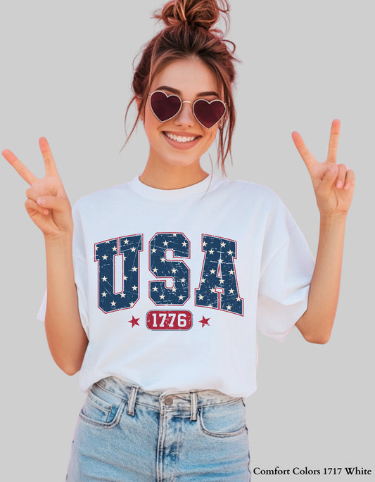 USA 1776 Shirt or Sweatshirt – Unisex 4th of July Patriotic Graphic Tee (Collegiate Star Design) Family Matching