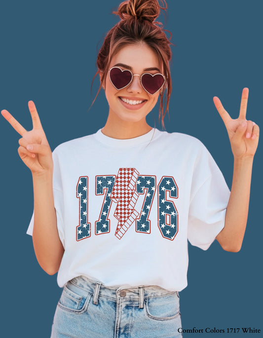 1776 Lightning Bolt USA T-Shirt or Sweatshirt – Vintage Distressed 4th of July Patriotic Graphic Tee