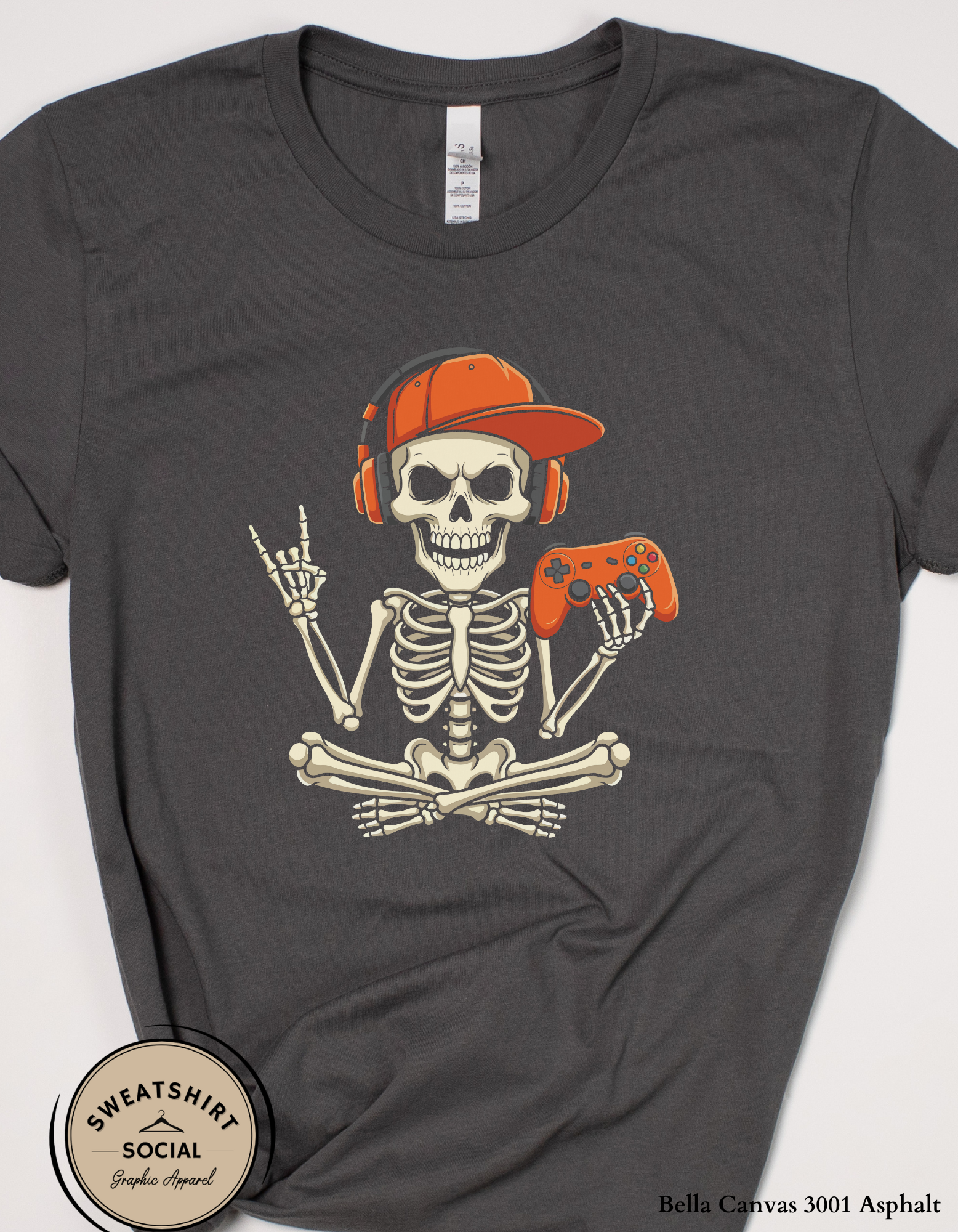 Adult Gamer Skeleton Halloween Shirt – Spooky Cool Gaming Tee (Unisex S–2XL)