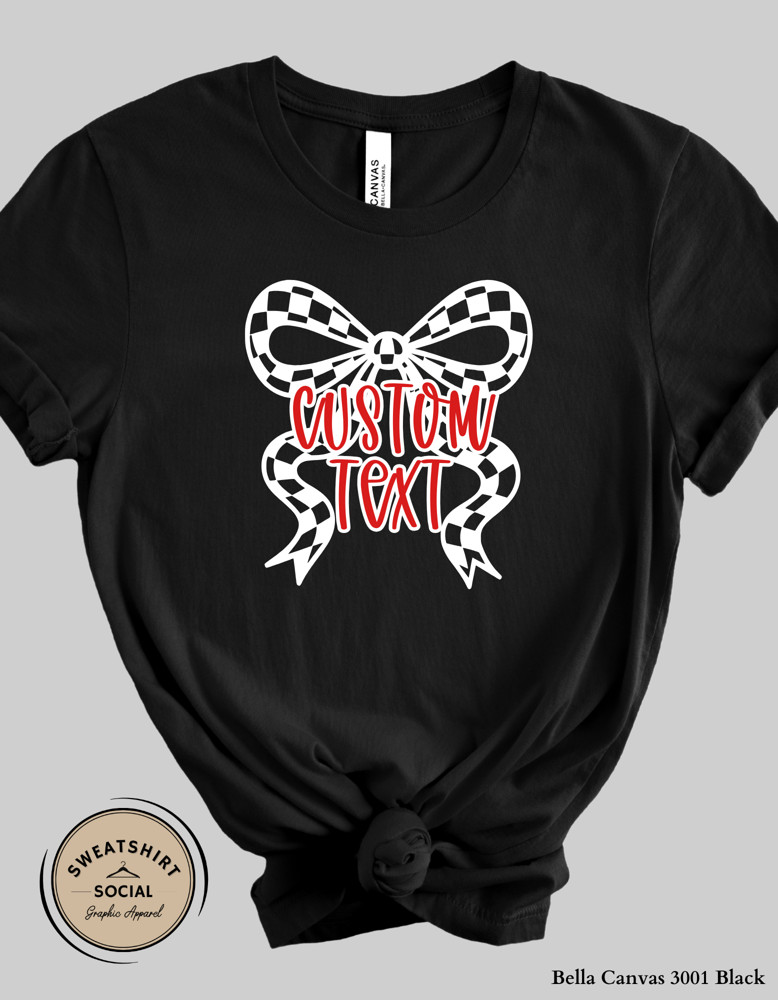 Create a shirt that’s all yours with this Custom Bow design! Choose your bow color, add your own text, and select a text color for a one-of-a-kind tee or sweatshirt. The text outline will automatically match your bow color, giving the whole design a polished, coordinated look.